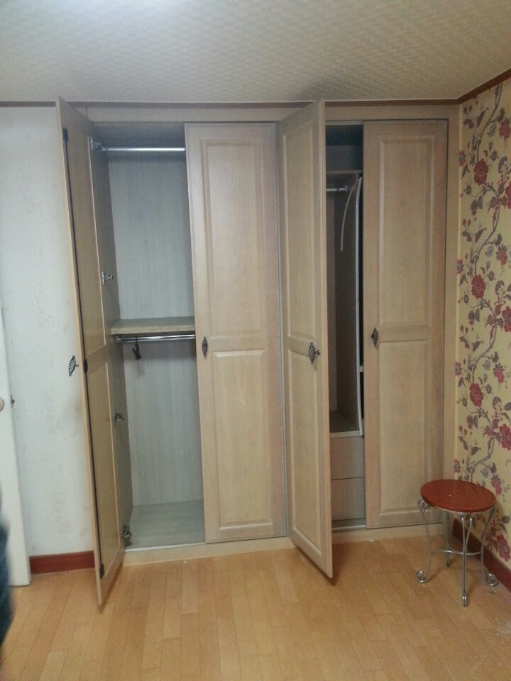 작은 방 안에 플라스틱으로 된 옷거치대로 옷장을 만들어 쓰고 계셨었는데요.