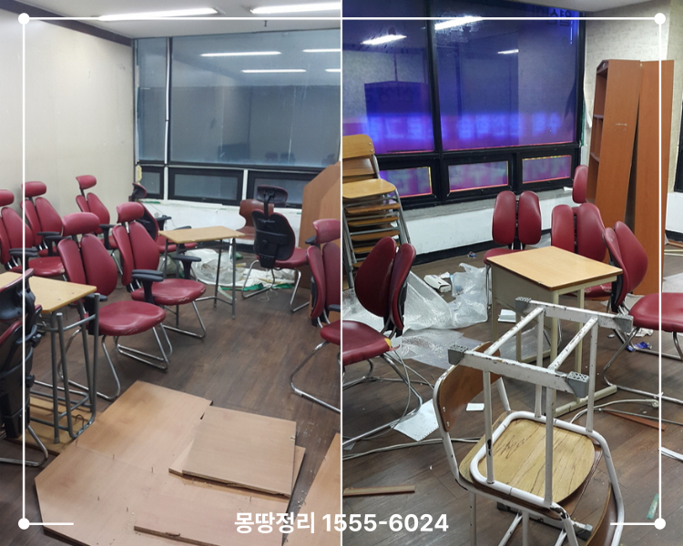 그리고 학원에 남아있던 물건들을 전부 빼낸다음 내부에 설치되어있는 칸막이들을 모두 제거해 드렸습니다.